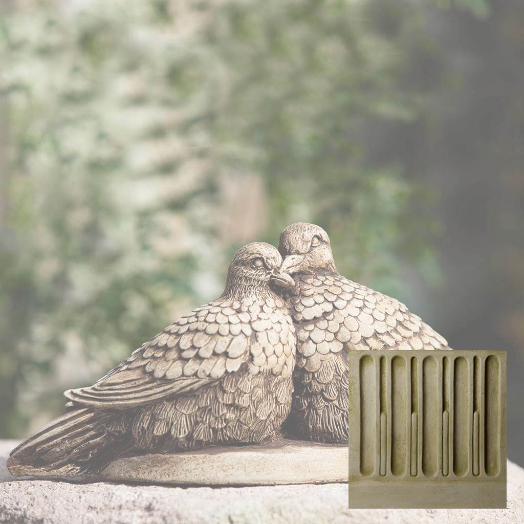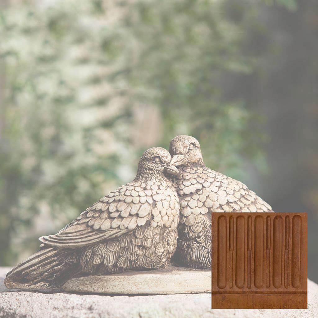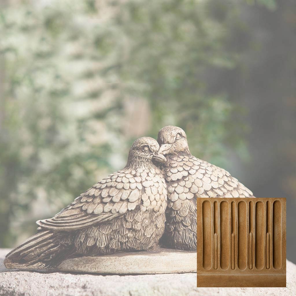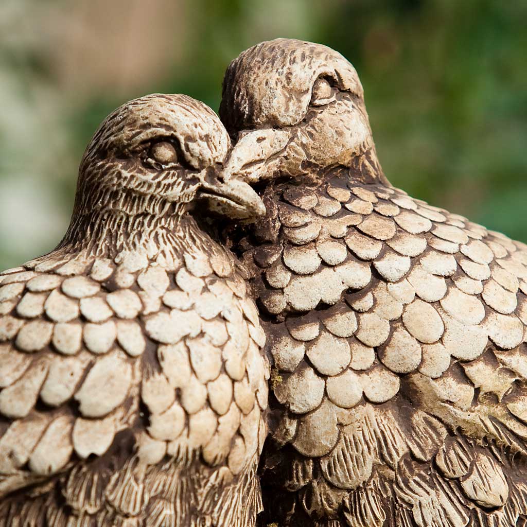 Pausing in the garden calms the mind and soothes the senses, helping us appreciate nature's simplicity. Watching birds gather or build nests reminds us we're part of something bigger. Garden elements like bird statues encourage us to enjoy these moments and the freedom of nature. The Lovebirds Statue by Campania adds charm to any space. Each piece is uniquely patinated by the team; this one is in Brownstone. Variations in size, weight, and color may occur due to materials and manufacturing. To prevent winter damage, elevate the statue off the ground to allow air circulation, store indoors if possible, and cover if left outside. Regularly check for water buildup and prepare before freezing.