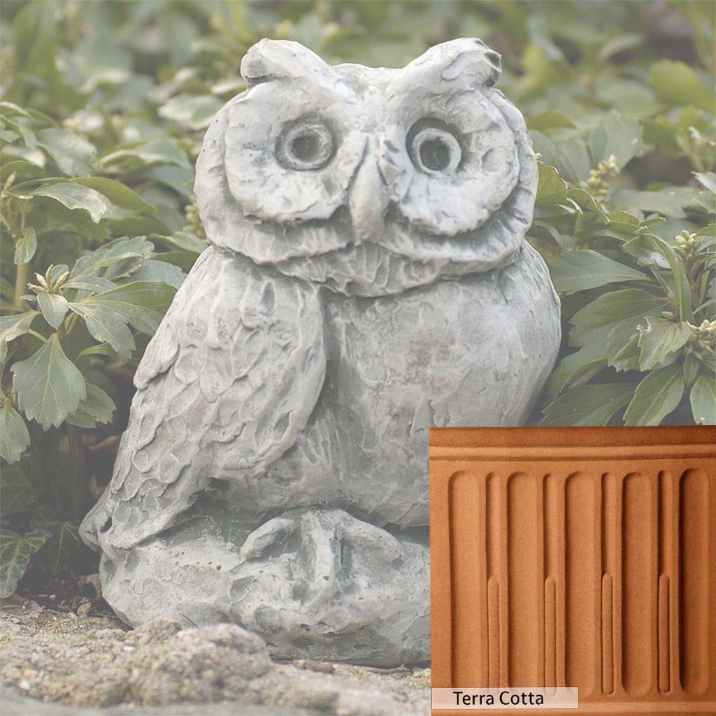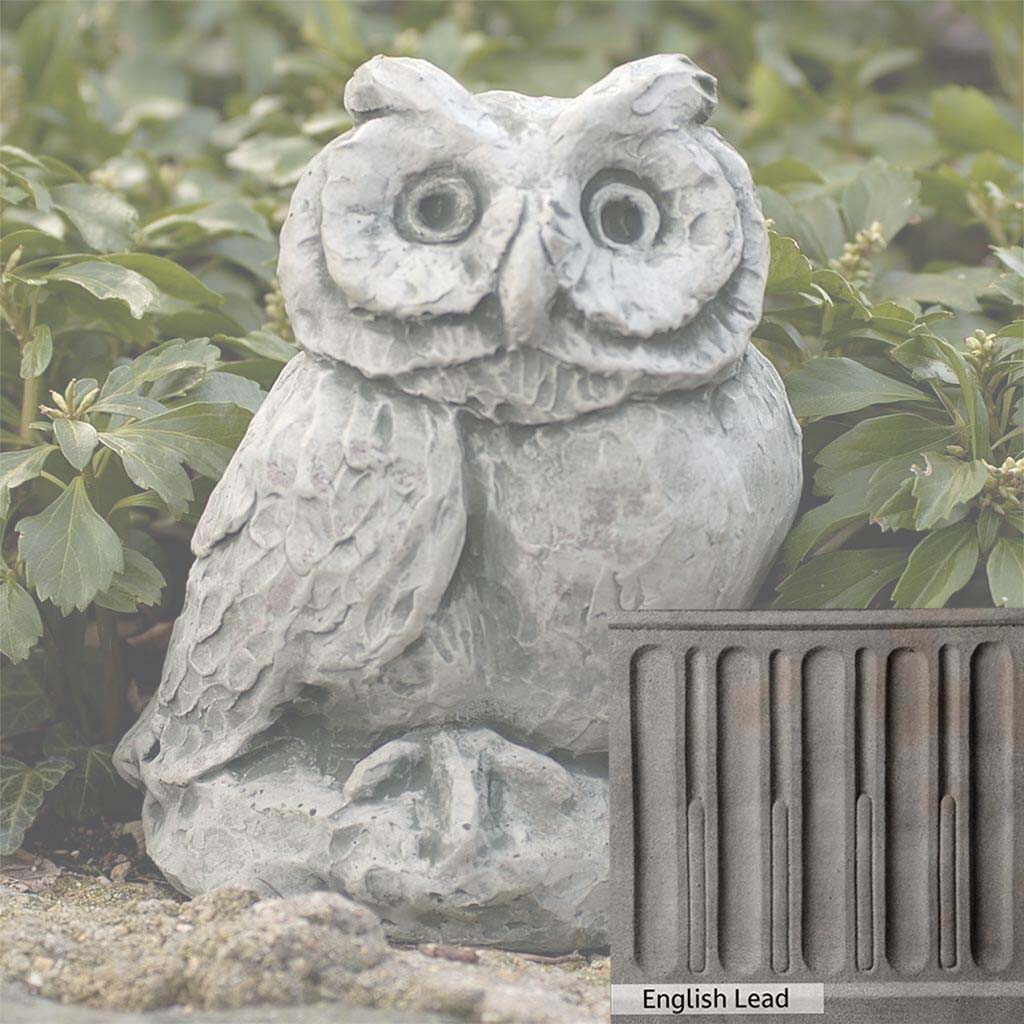 Each Merrie Little Owl Statue is hand-finished by Campania artisans in Alpine Stone, creating unique variations in color and patina. For longevity, elevate the statue off the ground during winter to prevent freeze-thaw damage and water pooling. Store indoors when possible, or cover with burlap and dark plastic if left outside. Natural differences in size, weight, and finish are inherent to cast stone craftsmanship.