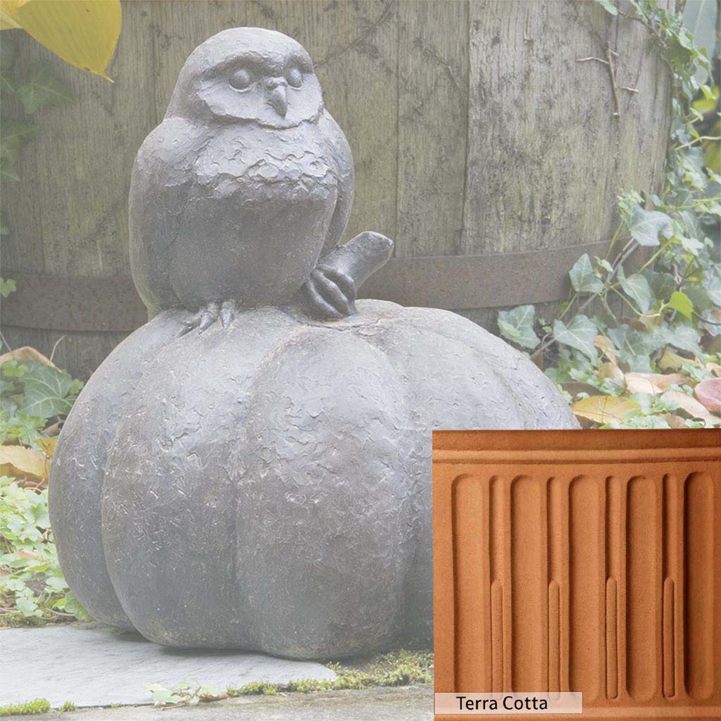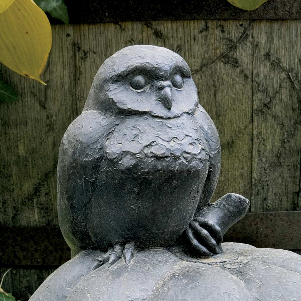 Each statue is individually finished by skilled craftspeople, ensuring unique character and depth. Perfect for patios, garden beds, or outdoor gathering spaces, this owl perched on its pumpkin base serves as both a striking focal point and a conversation starter. The cast stone construction develops natural variations in color and texture over time, adding authentic charm.