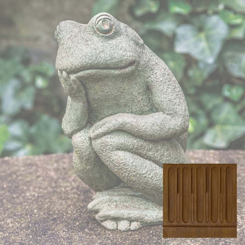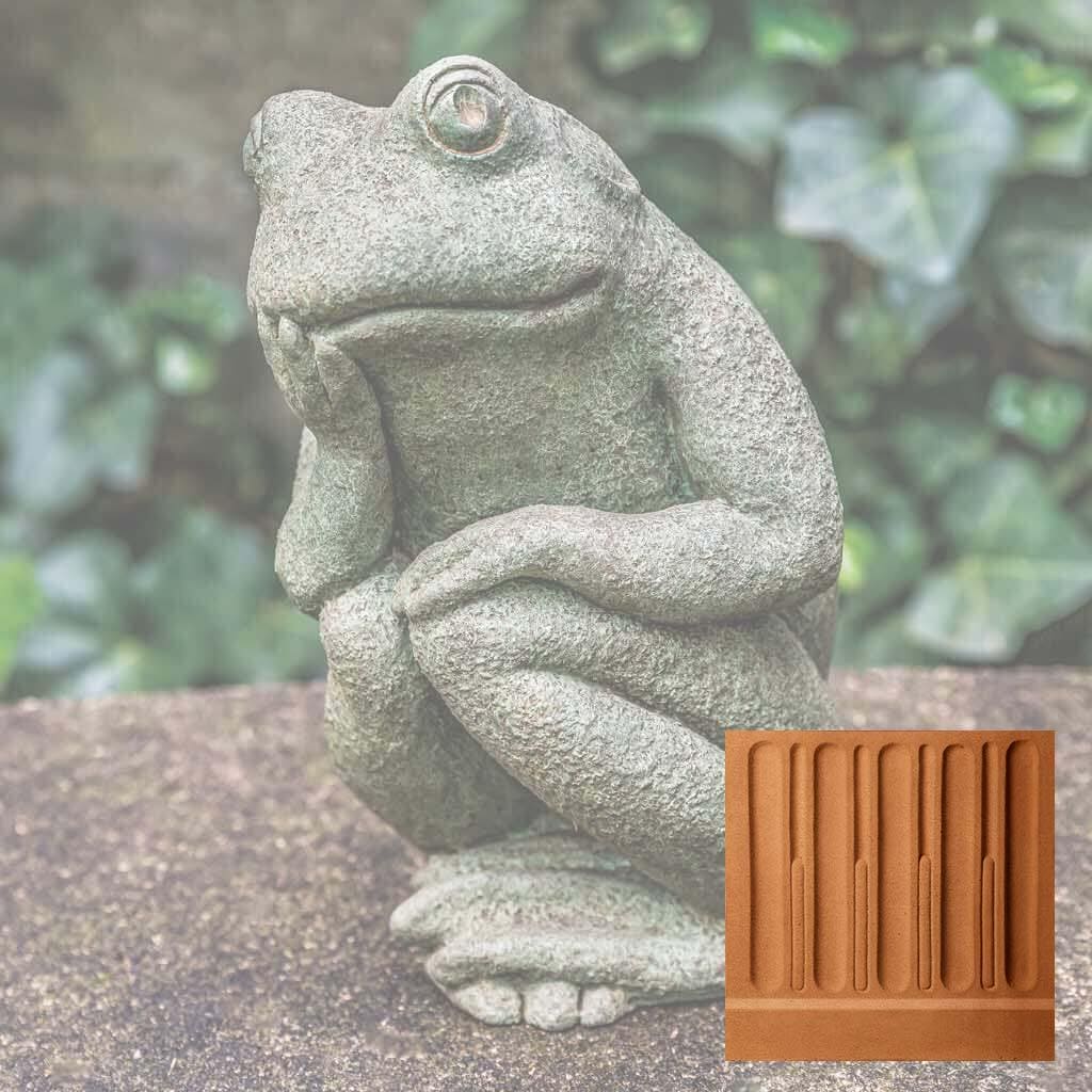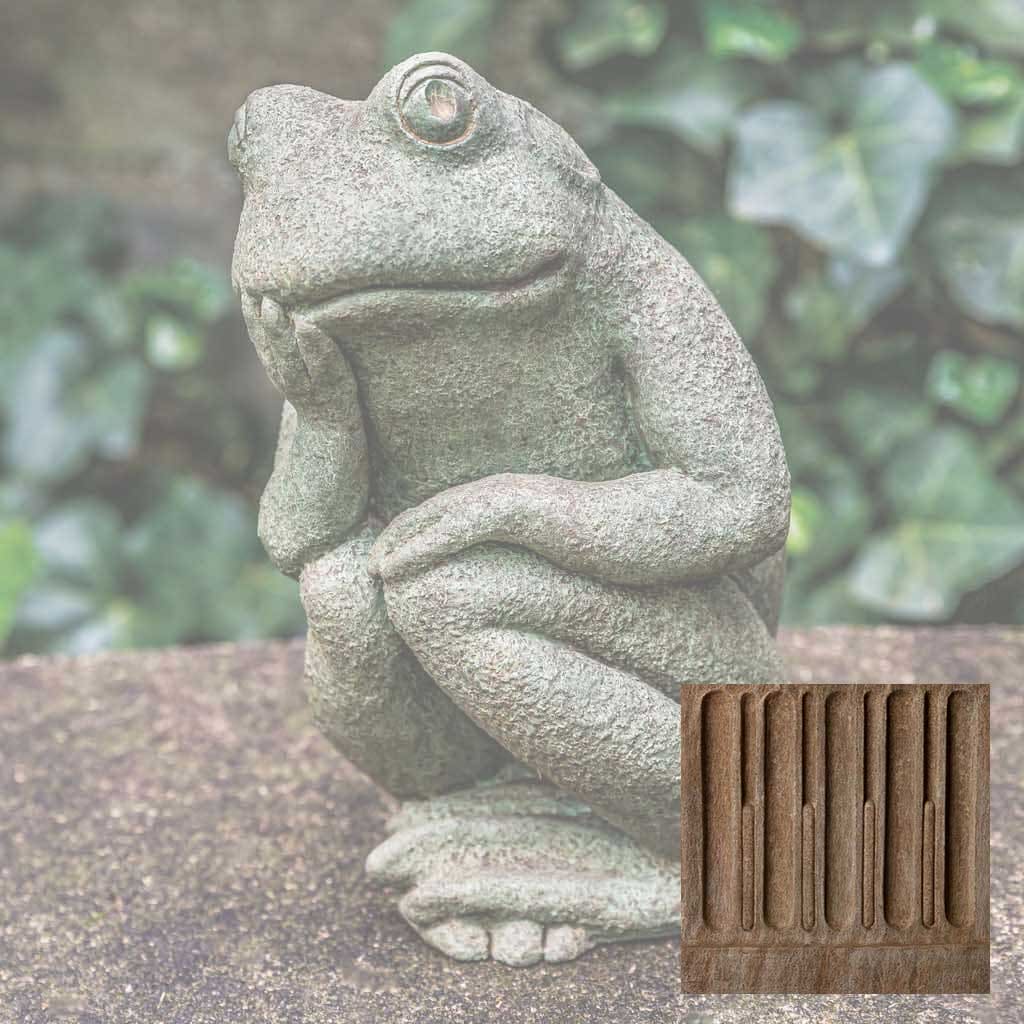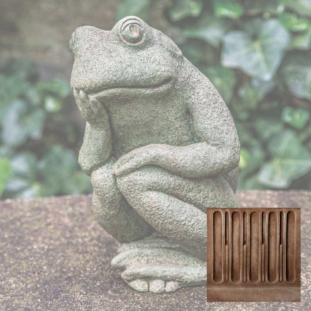 Elevate your garden's visual appeal with this handcrafted frog sculpture from Campania International, a celebrated American artisan studio. This distinctive Small Thoughts Statue captures whimsical charm while serving as a functional garden focal point or indoor accent piece. Each casting receives a carefully applied Copper Bronze patina, ensuring no two pieces are identical. The cast stone construction develops natural character over time, though variations in color and finish may occur due to the artisanal process. For longevity, winter protection is essential—elevate the statue to promote air circulation and prevent freeze-thaw damage, or store indoors when possible. If outdoor placement is preferred, shield it with burlap and dark plastic while monitoring for water accumulation—a timeless investment in garden artistry.