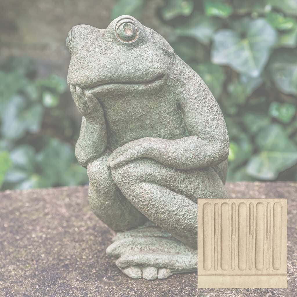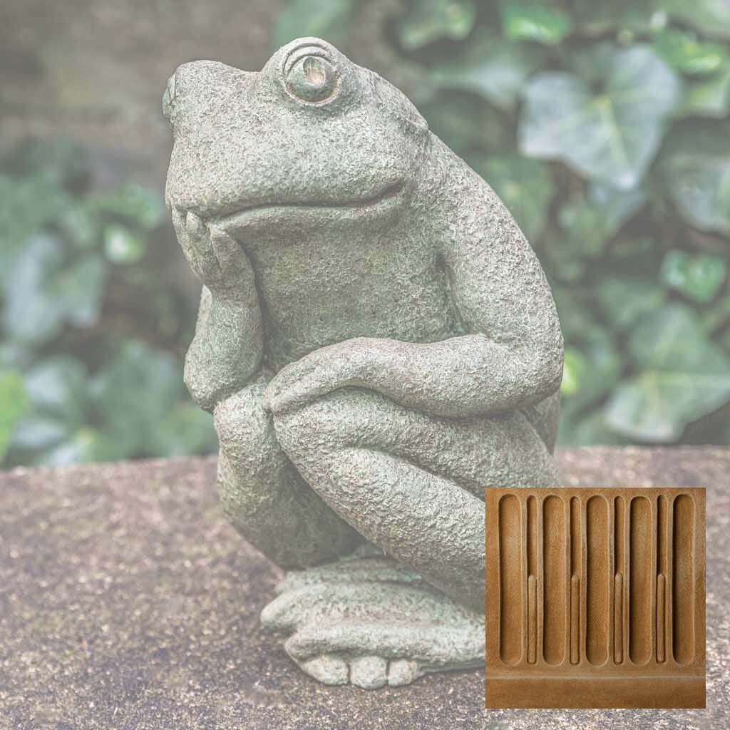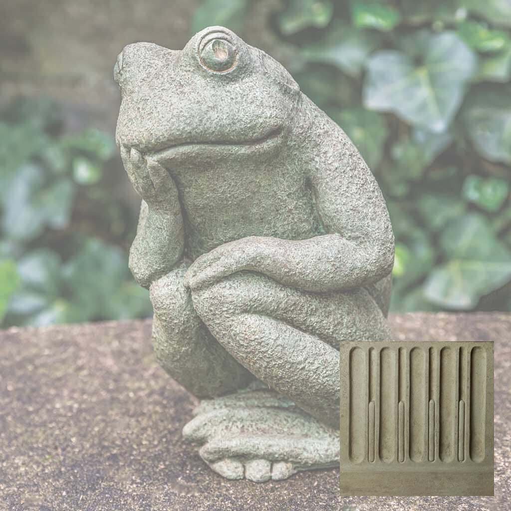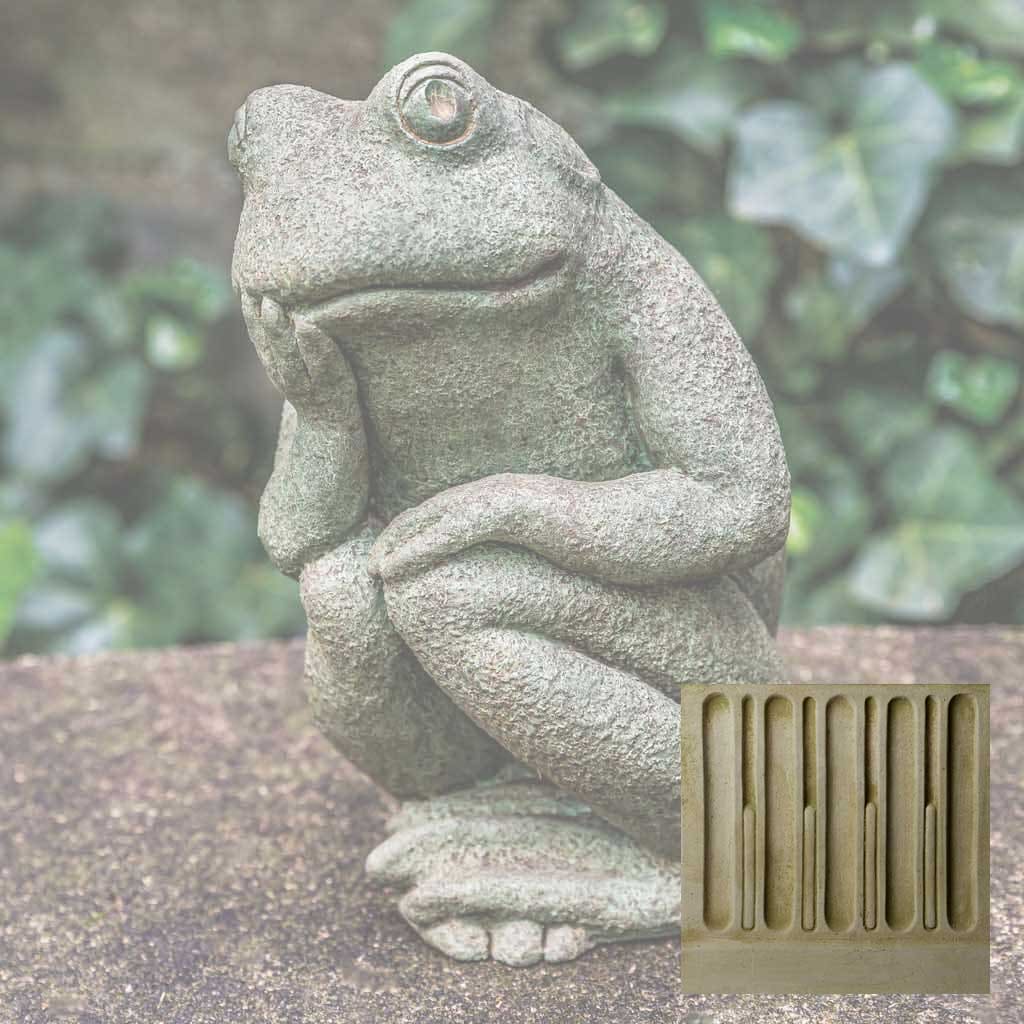 Elevate your garden's visual appeal with this handcrafted frog sculpture from Campania International, a celebrated American artisan studio. This distinctive Small Thoughts Statue captures whimsical charm while serving as a functional garden focal point or indoor accent piece. Each casting receives a carefully applied Copper Bronze patina, ensuring no two pieces are identical. The cast stone construction develops natural character over time, though variations in color and finish may occur due to the artisanal process. For longevity, winter protection is essential—elevate the statue to promote air circulation and prevent freeze-thaw damage, or store indoors when possible. If outdoor placement is preferred, shield it with burlap and dark plastic while monitoring for water accumulation—a timeless investment in garden artistry.