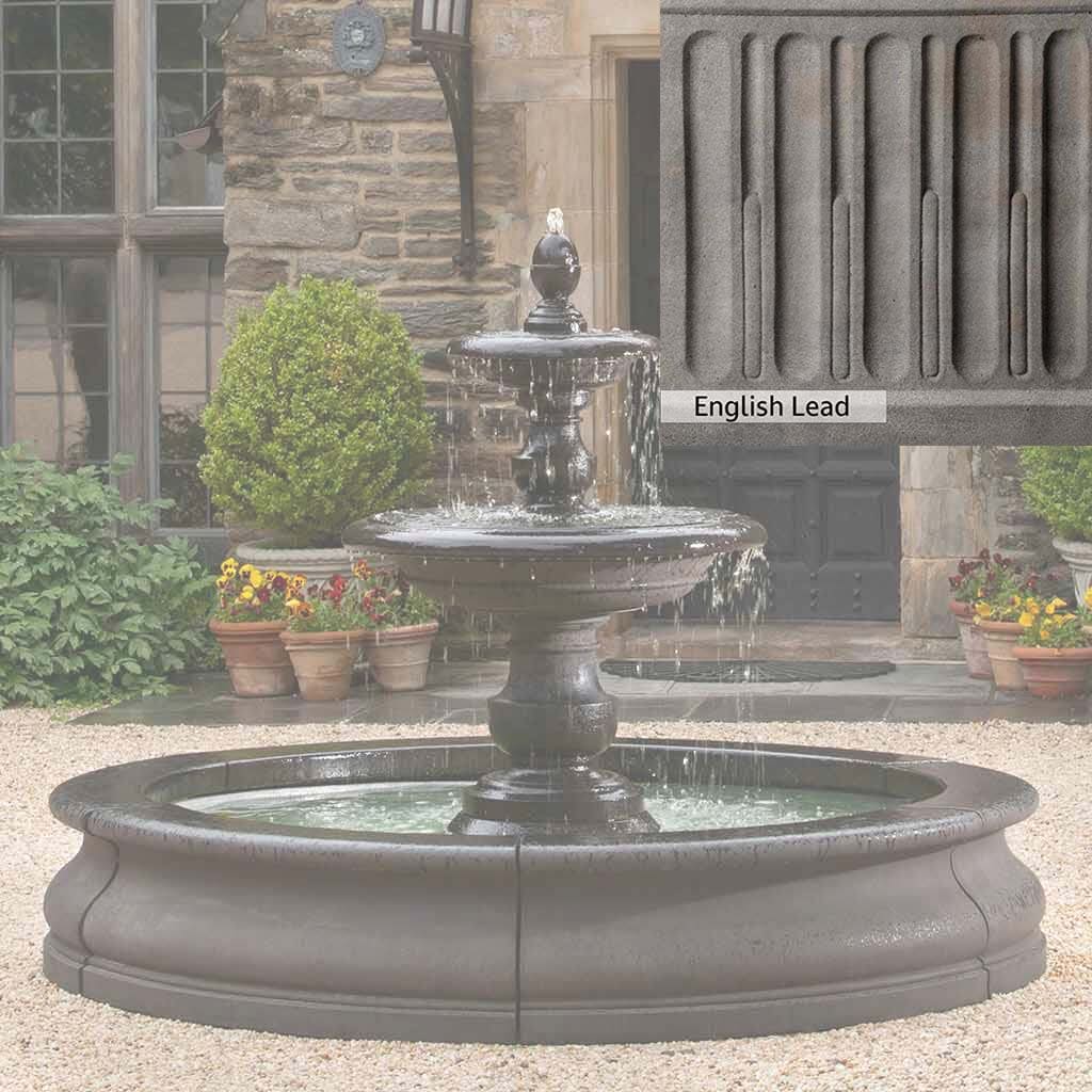 The Caterina Fountain in Basin is handcrafted by skilled artisans in the USA. With their extensive experience, the Campania team applies a unique patina to ensure that each piece is special. This fountain is shown in the Nero Nuovo color. Campania International's proprietary cast stone blend is meticulously molded to create each piece used in the construction of this fountain. Due to the use of different materials and manufacturing processes, as well as varying photography conditions, natural variations in size, weight, and color can occur. The actual color may differ from the photo.
