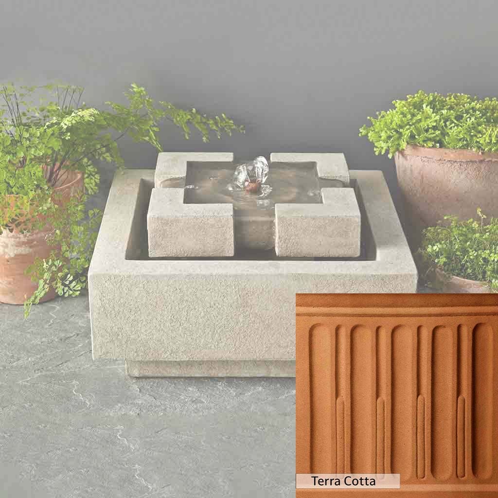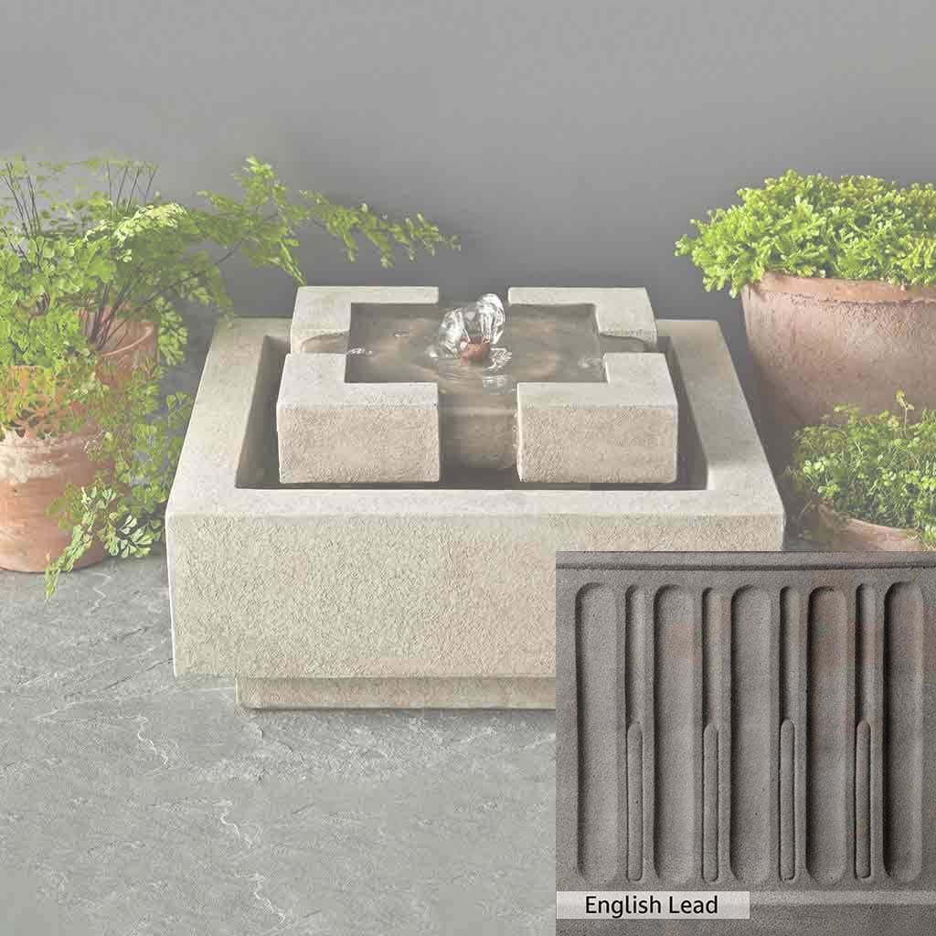 The M-Series Escala Fountain is handcrafted by skilled artisans in the USA. With their extensive experience, the Campania team applies a unique patina to ensure that each piece is special. This fountain is shown in the Greystone color. Campania International's proprietary cast stone blend is meticulously molded to create each piece used in the construction of this fountain. Due to the use of different materials and manufacturing processes, as well as varying photography conditions, natural variations in size, weight, and color can occur. The actual color may differ from the photo.