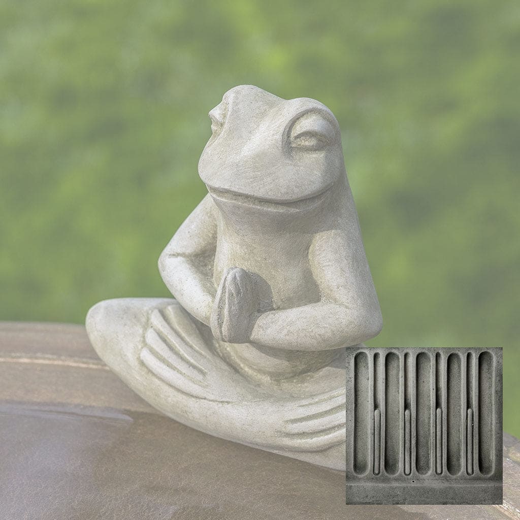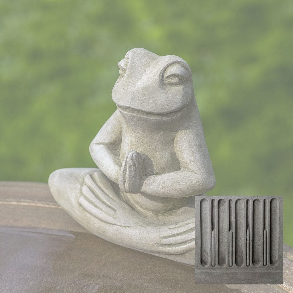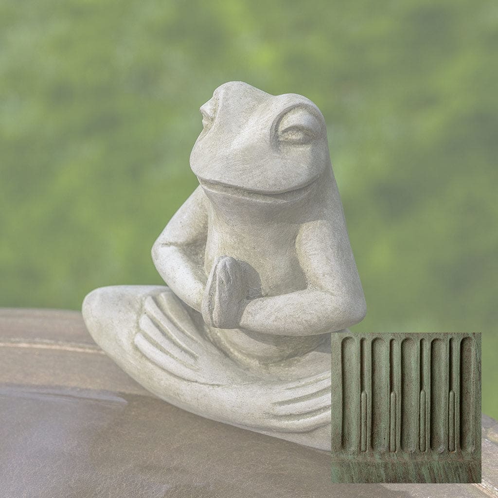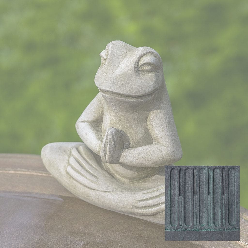 Add contemplative charm to your garden with this handcrafted Meditation Frog Statue from Campania International. Sculpted and cast in the USA by skilled artisans, this distinctive piece transforms outdoor spaces with its serene presence. Display it nestled among plantings or as an elegant accent on a patio table. Each statue receives a custom patina finish applied by experienced hands, ensuring no two pieces are identical. Finished in English Moss, natural variations in color and size reflect the authentic cast stone construction. For longevity, elevate the statue during winter months to promote air circulation and prevent freeze-thaw damage. Store indoors when possible, or protect with burlap and dark plastic if left outside, checking regularly for water accumulation.