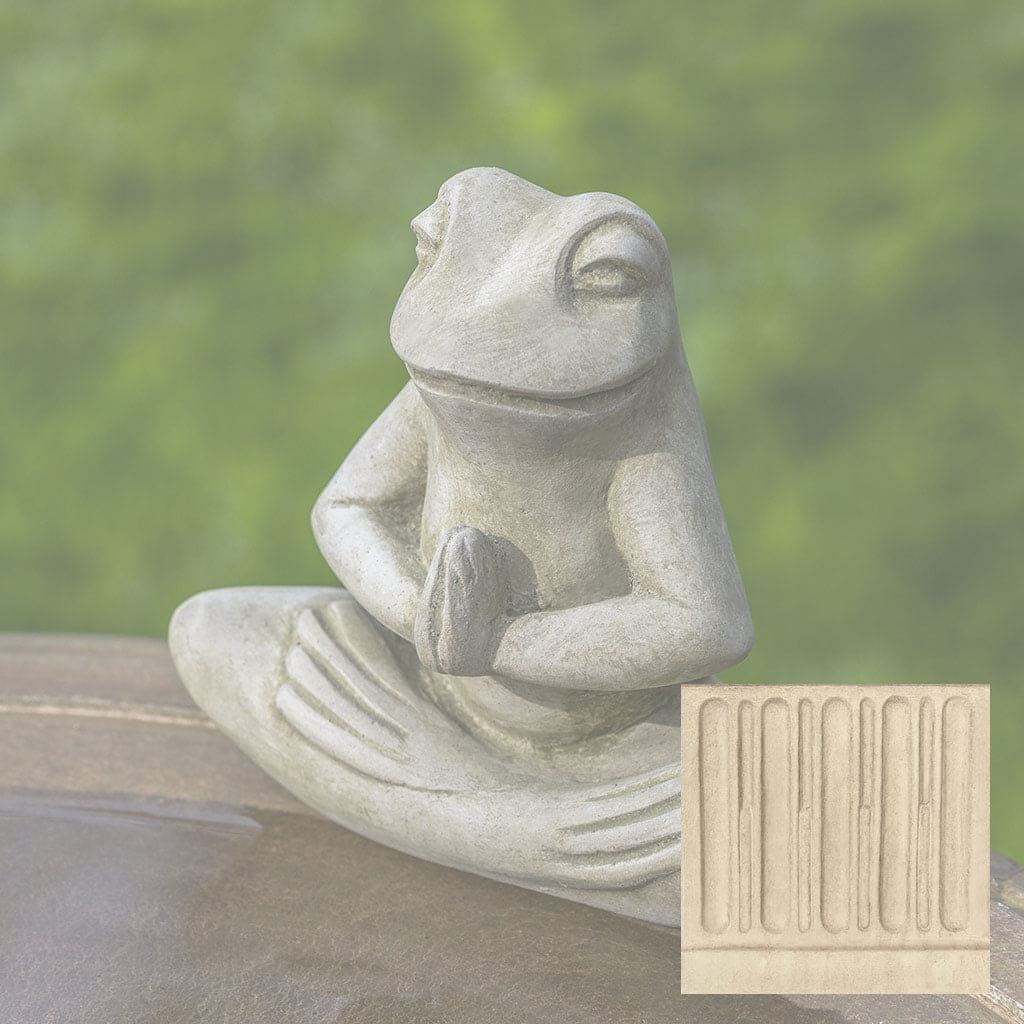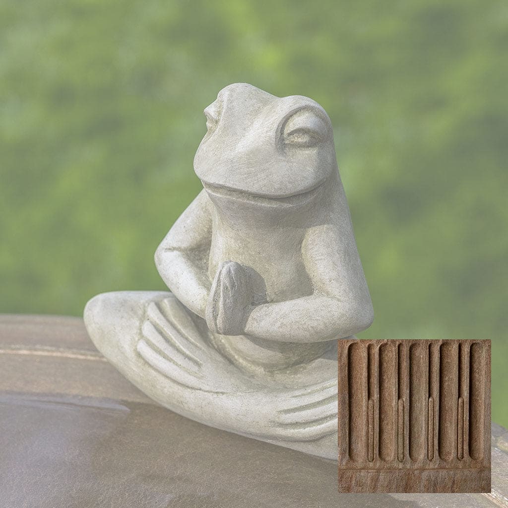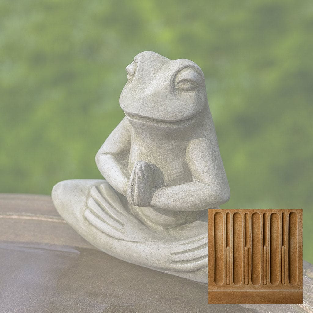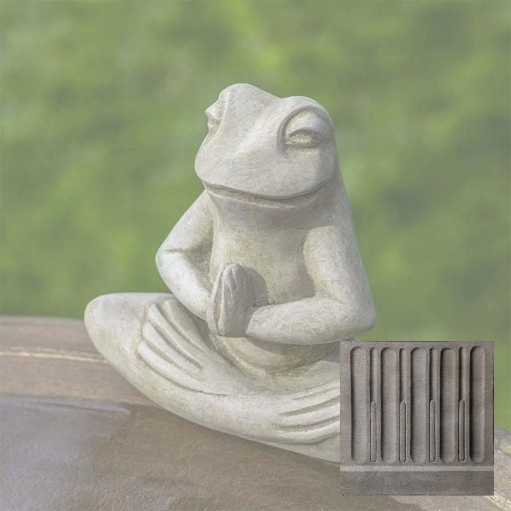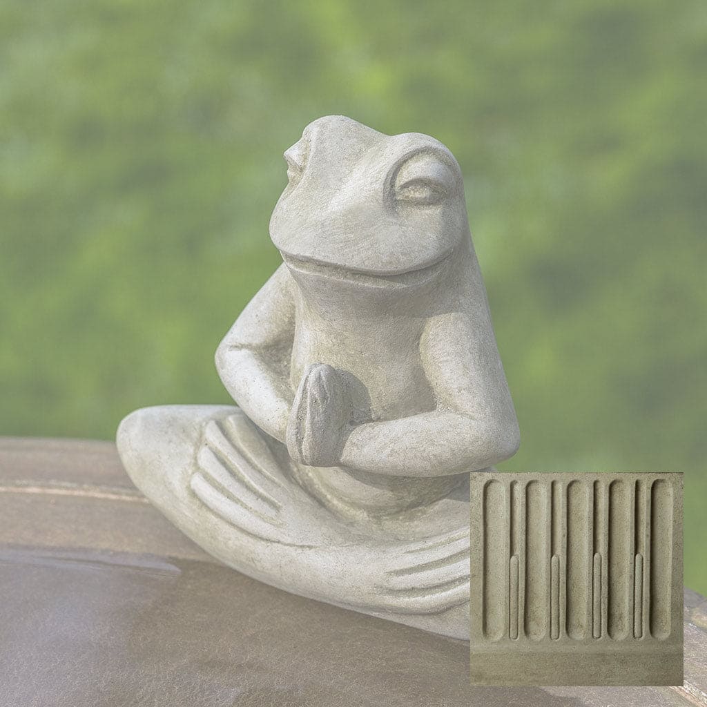 Add contemplative charm to your garden with this handcrafted Meditation Frog Statue from Campania International. Sculpted and cast in the USA by skilled artisans, this distinctive piece transforms outdoor spaces with its serene presence. Display it nestled among plantings or as an elegant accent on a patio table. Each statue receives a custom patina finish applied by experienced hands, ensuring no two pieces are identical. Finished in English Moss, natural variations in color and size reflect the authentic cast stone construction. For longevity, elevate the statue during winter months to promote air circulation and prevent freeze-thaw damage. Store indoors when possible, or protect with burlap and dark plastic if left outside, checking regularly for water accumulation.