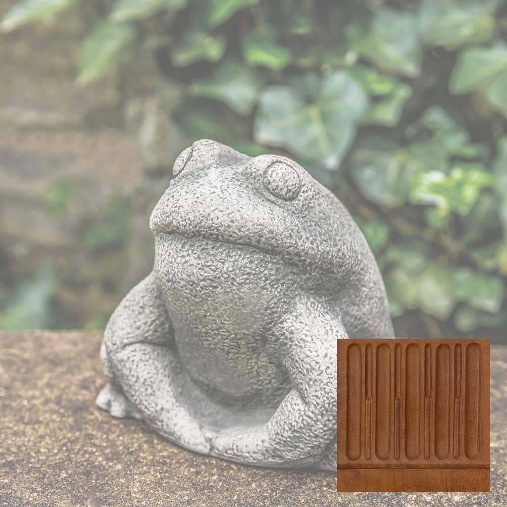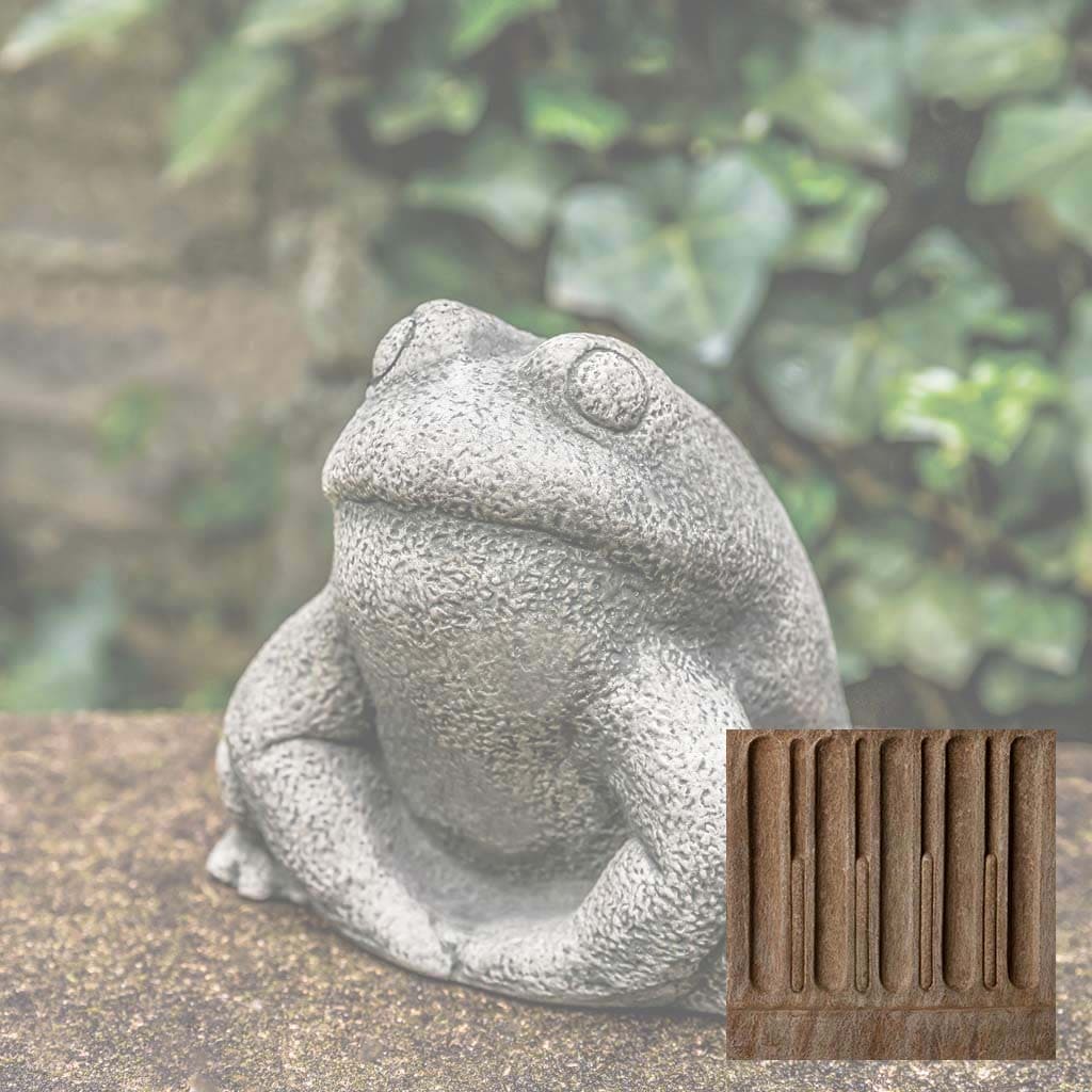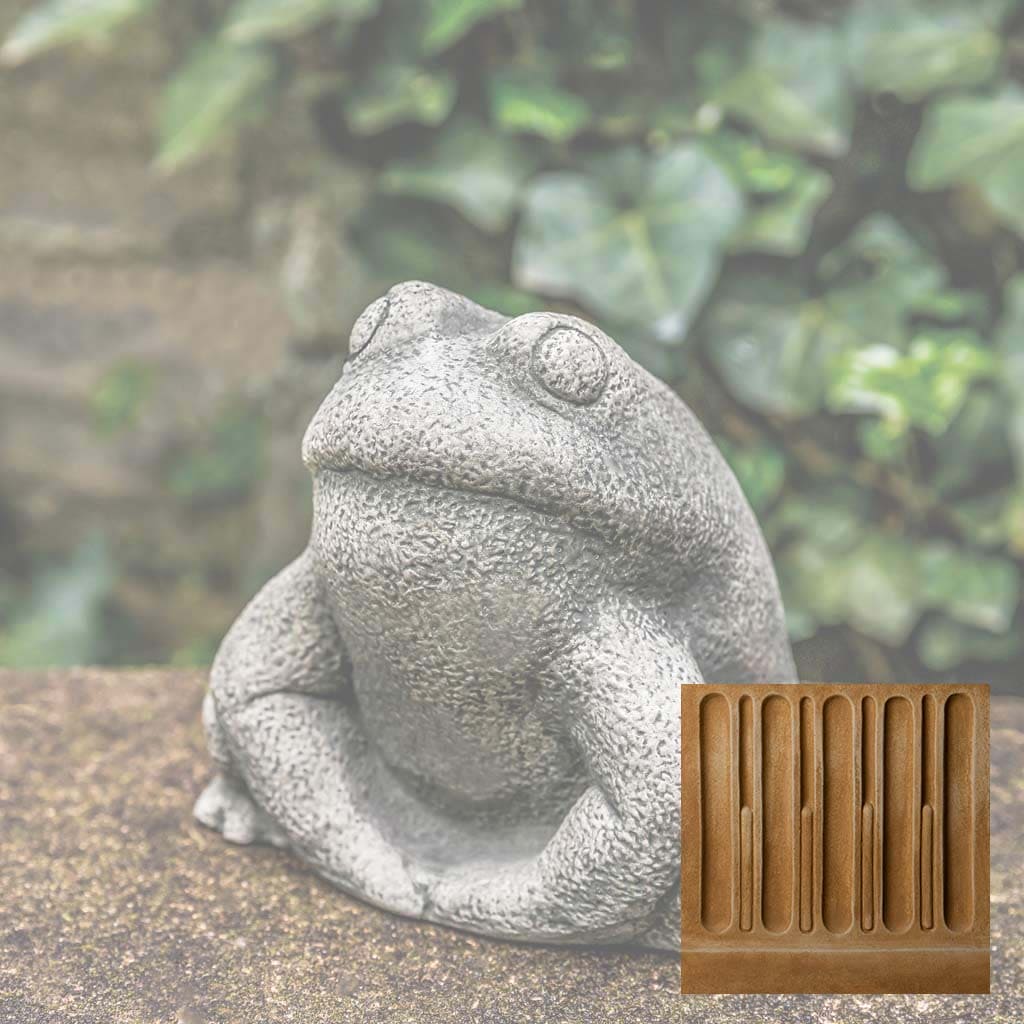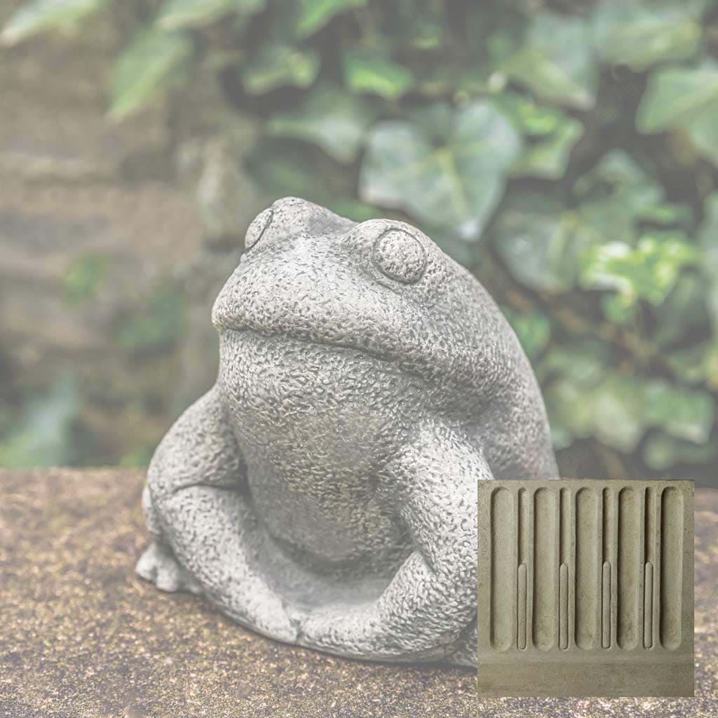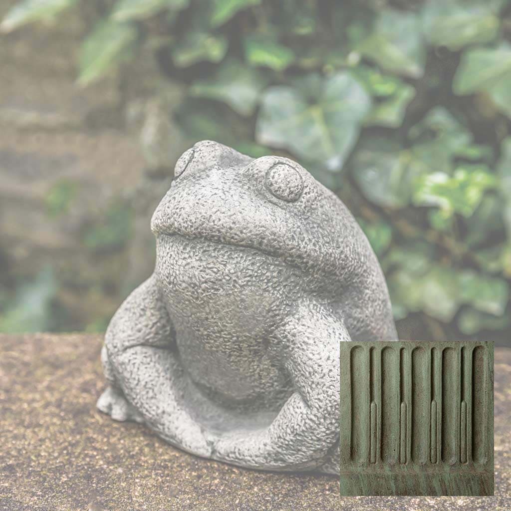 This handcrafted Stone Frog Statue from Campania International is a USA-made garden sculpture that enhances outdoor landscapes with distinctive character. Each piece features a hand-applied Greystone patina, ensuring unique variations in finish. Suitable for garden beds or tabletop display, the statue requires winter protection—raise it off the ground and cover to prevent freeze-thaw damage and water accumulation.