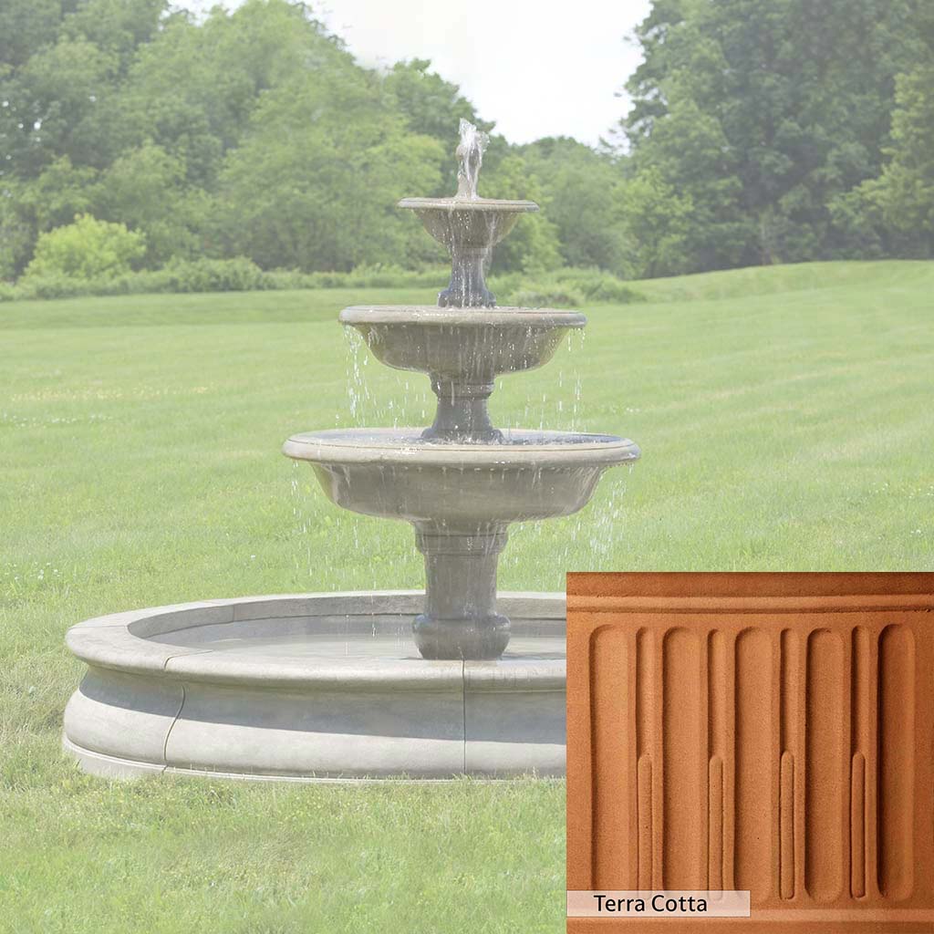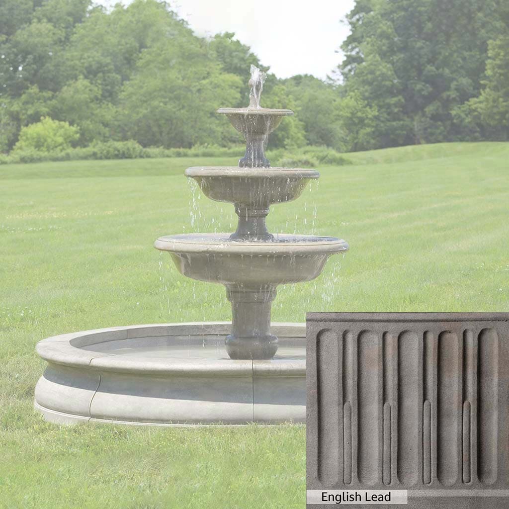 Skilled artisans in the USA handcraft the Newport Garden Fountain. The Campania team applies the unique patina using their experience, making each piece one-of-a-kind. This fountain is shown in the Greystone color. Campania International's unique cast stone blend is meticulously molded to create each piece used in the construction of this fountain. Due to the materials, manufacturing processes, and variations in photography conditions, natural differences can occur in size, weight, and color. The actual color may vary from the photo.